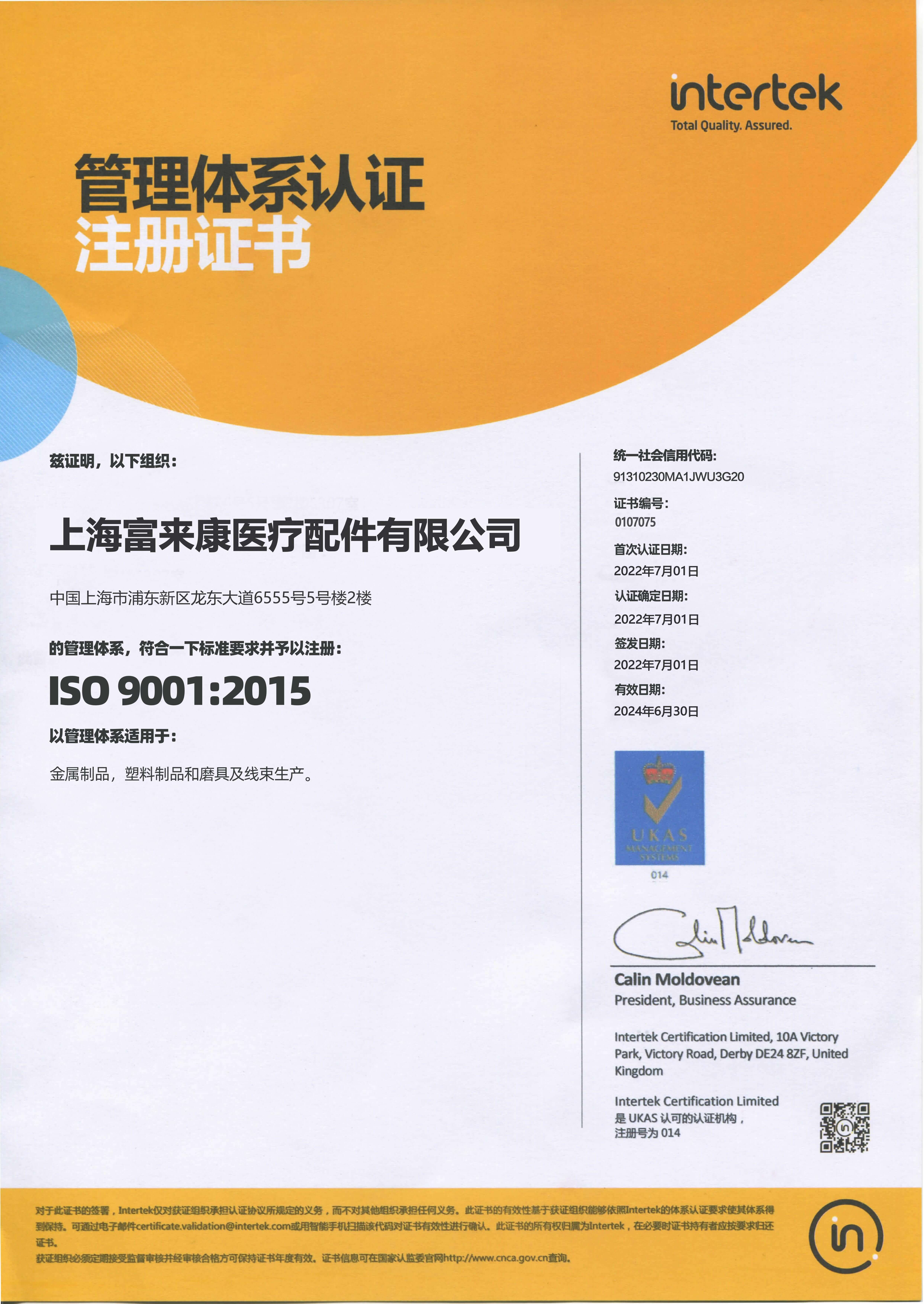 上海富来康医疗配件有限公司
